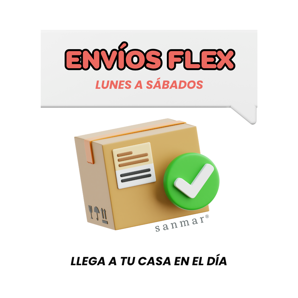 - FLEX: Recibís en el día de 16 a 22 hs, si compras antes de las 13hs. Se entrega de LUNES a SÁBADOS inclusive. Servicio de envíos apto para CABA, GBA 1, GBA2 y GBA 3.